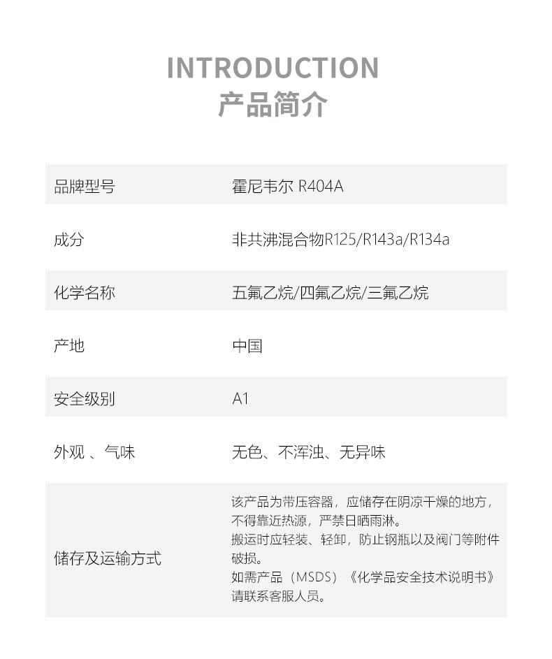 霍尼韋爾R-404A制冷劑,別名R404A,商品名稱Genetron® 404A冷媒。由于霍尼韋爾R-404A冷媒屬于HFC型非共沸環(huán)保制冷劑(完全不含破壞臭氧層的CFC、HCFC),得到目前絕大多數(shù)國家的認(rèn)可并推薦的低溫環(huán)保制冷劑,廣泛用于新冷凍設(shè)備上的初裝和維修過程中的再添加。