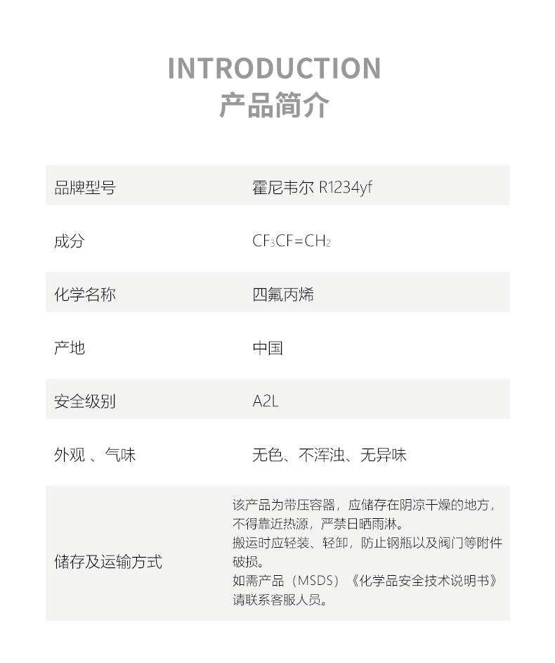 化學(xué)成分:四氟丙烯 CH2CFCF3