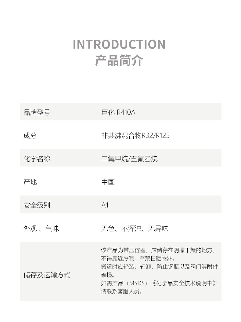 品牌型號:巨化R-410A